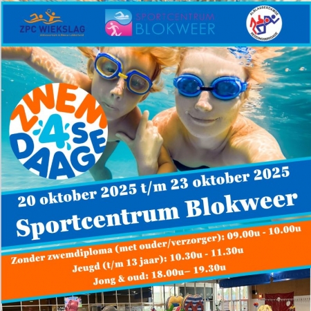 Van maandag 20 oktober t/m donderdag 23 oktober 2025 kunnen alle zwemfanaten meedoen aan de zwemvierdaagse. | lees meer »